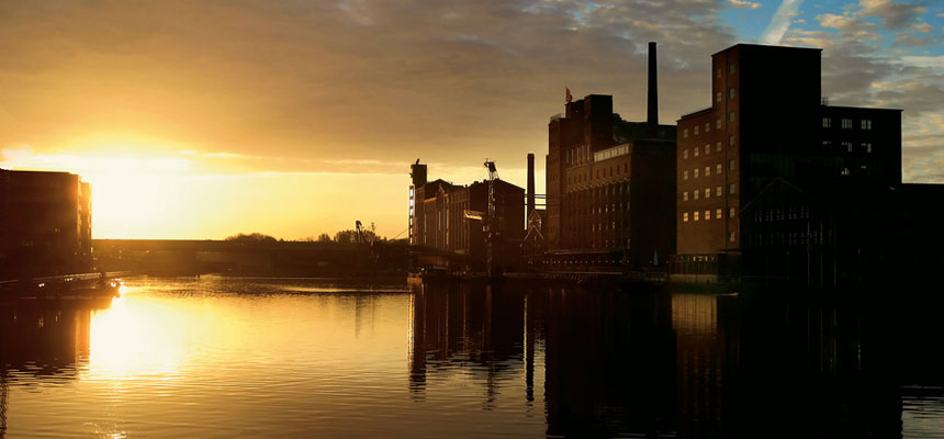 Nachdem nunmehr durch die Stadt Duisburg die Baugenehmigung erteilt wurde, haben die ersten Firmen mit den Umbauarbeiten der neuen Zentrale der Volksbank Rhein-Ruhr am Innenhafen begonnen.