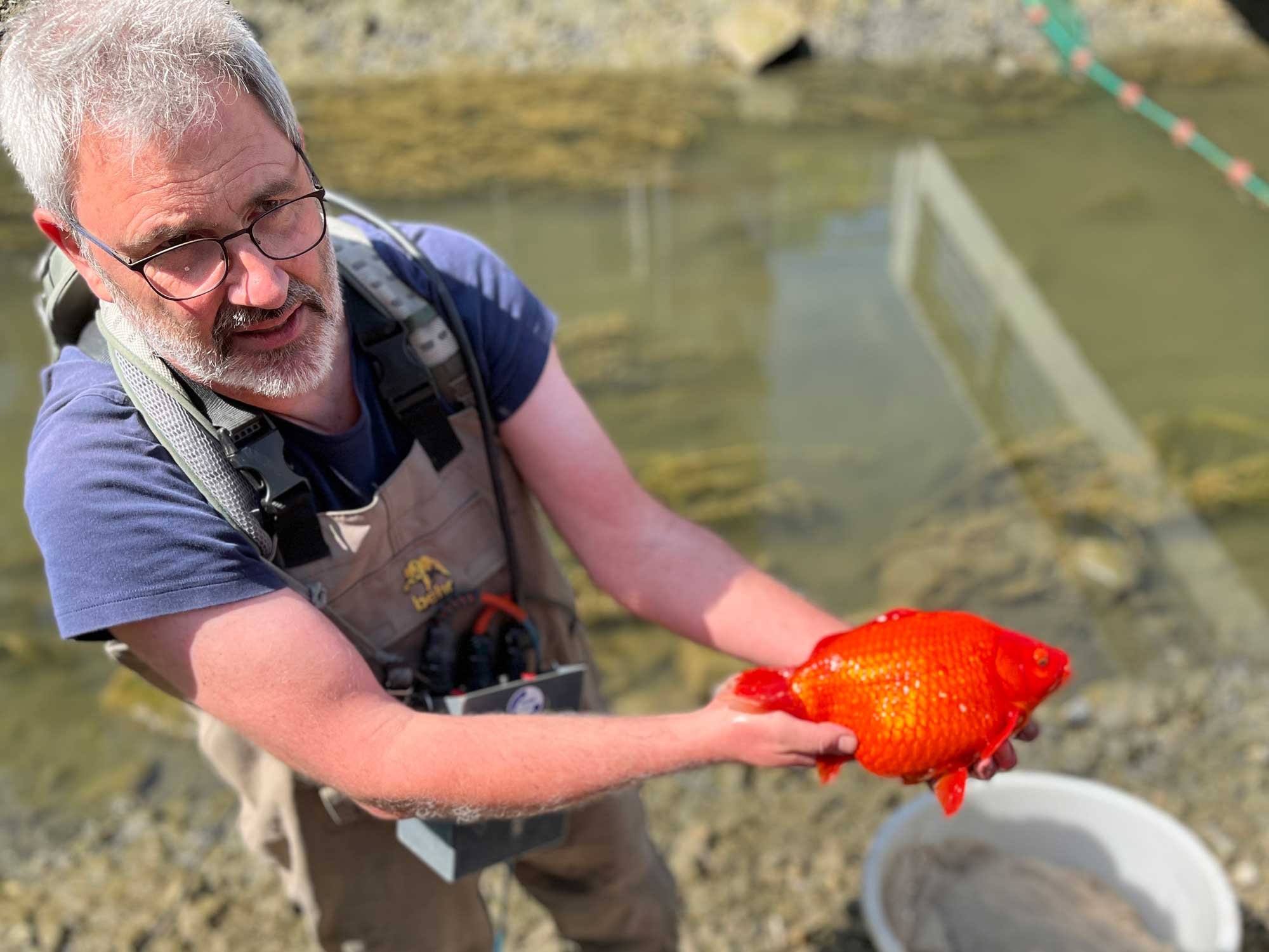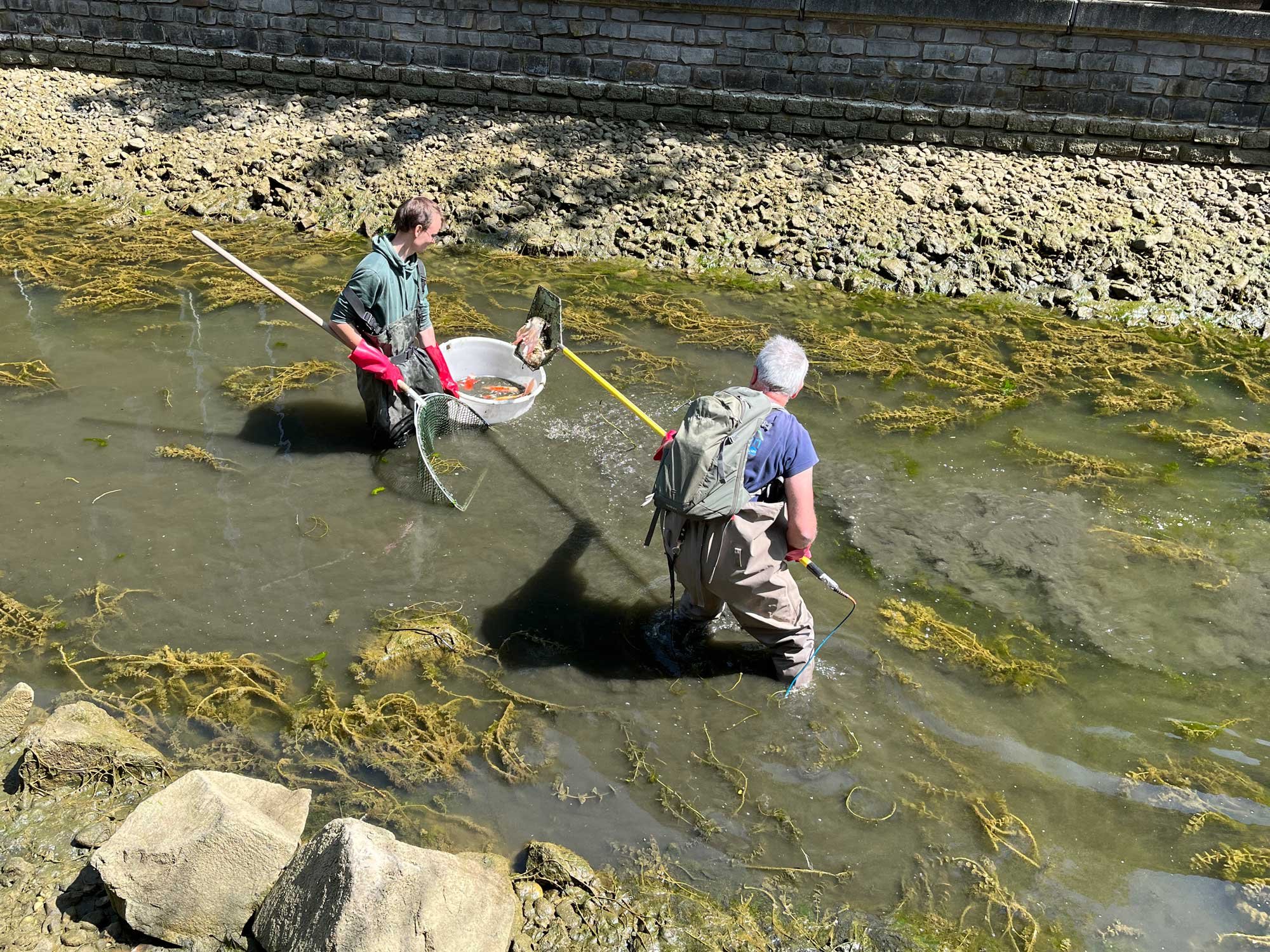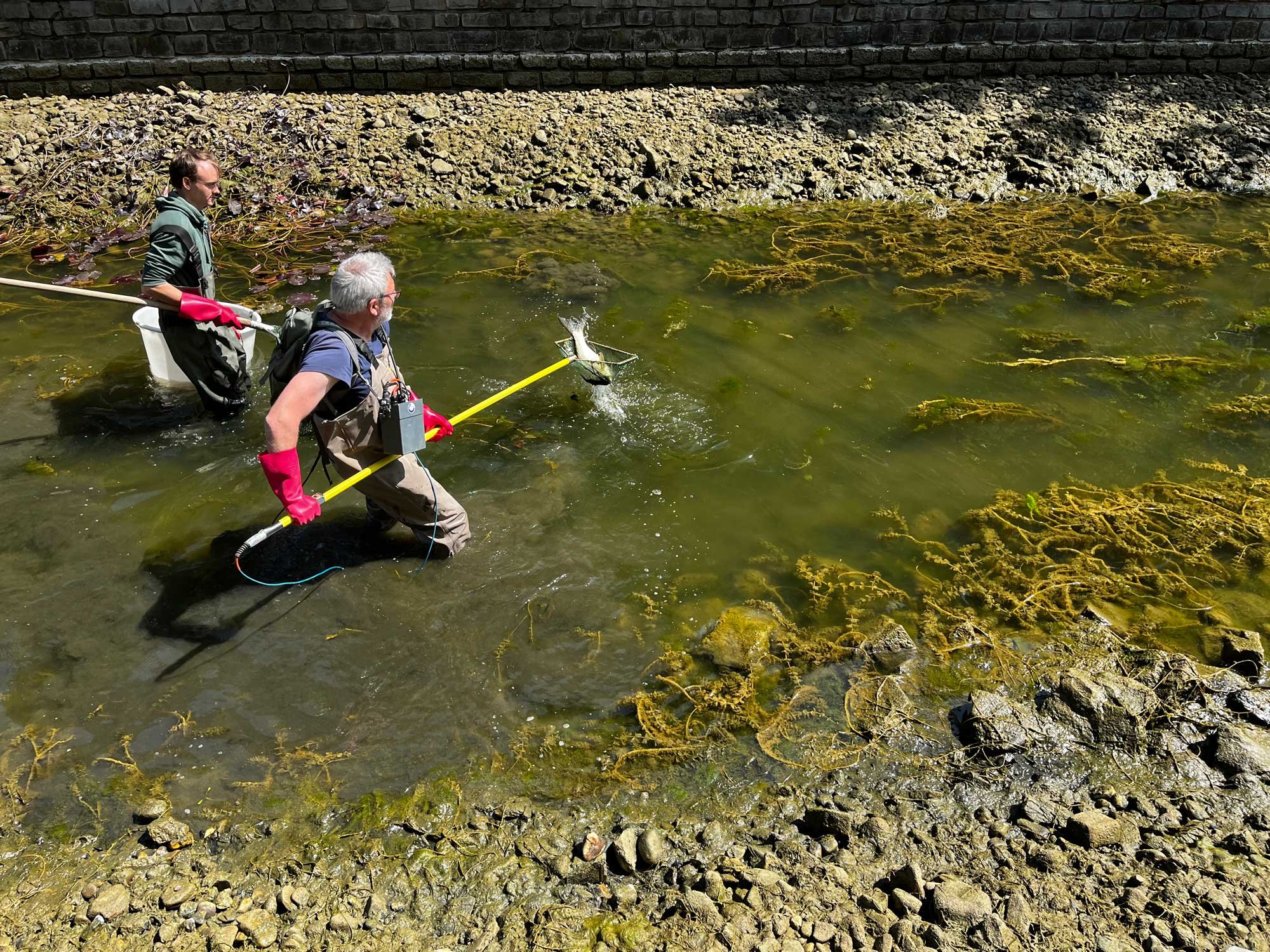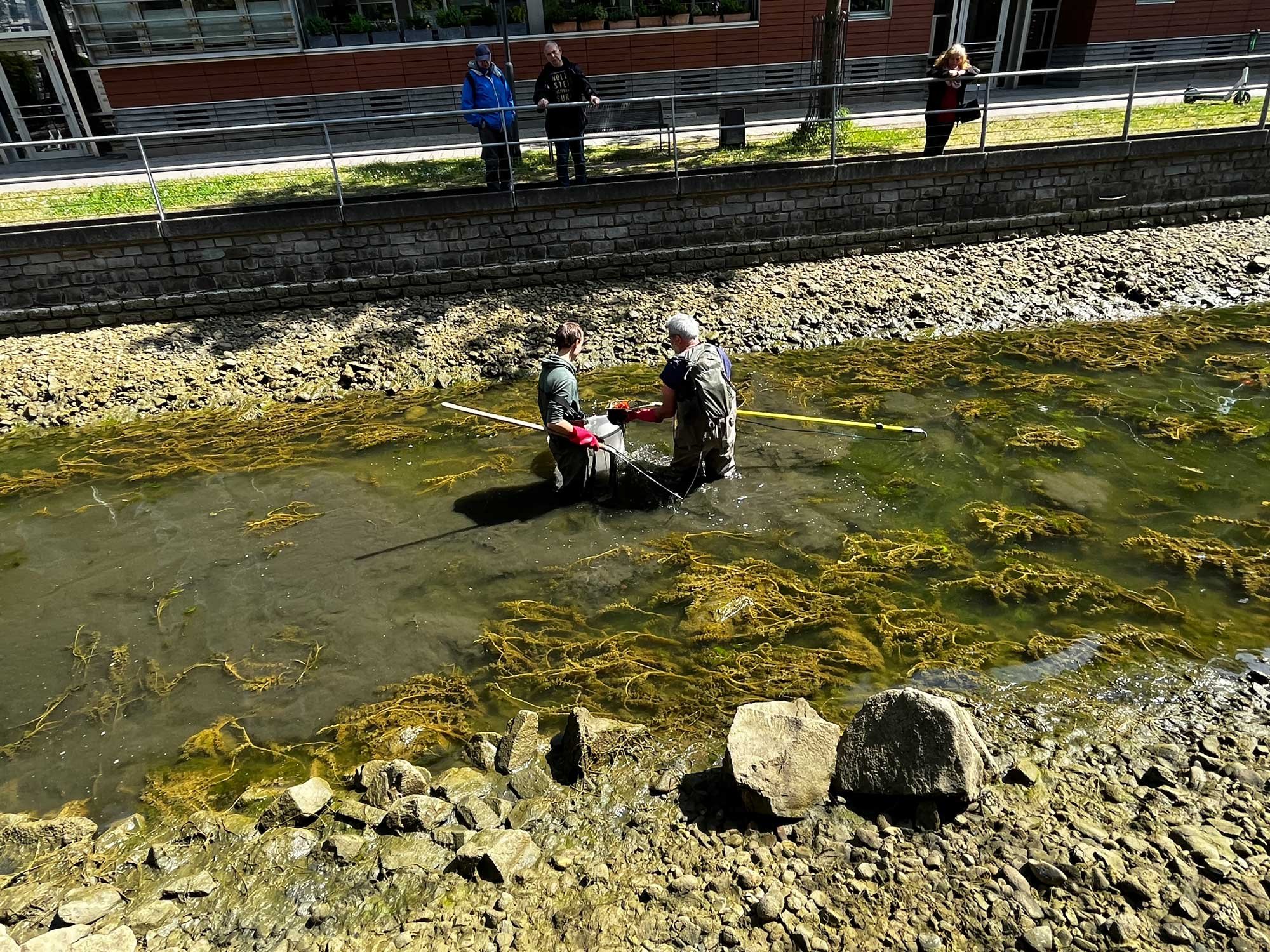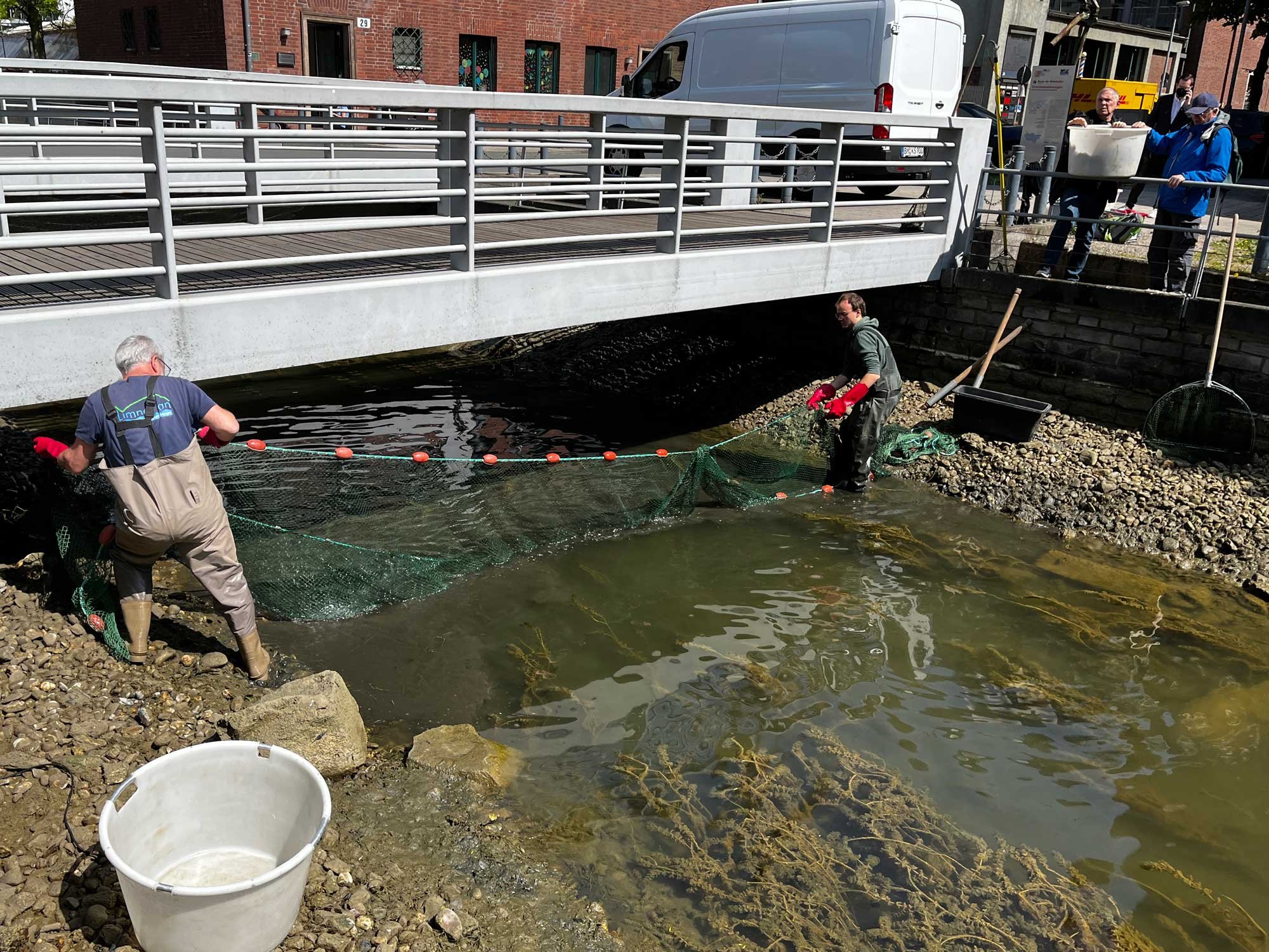 Voraussichtlich Ende Juni starten die Bauarbeiten zur Sanierung der Hanse- und Speichergracht. (wir berichteten) Deshalb wurden heute in einem ersten Schritt die Fische von zertifizierten Fischern aus den Grachten entnommen. Neben vielen Kois und etlichen kleineren Fischen befand sich auch ein Rapfen in der Speichergracht. Der Rapfen (Leuciscus aspius) ist ein karpfenartiger Raubfisch, wird maximal ca. 120 cm lang und über 10 kg schwer. Alle eingefangenen Fische werden in den kommenden Tagen in artgerechte Gewässer ausgesetzt.