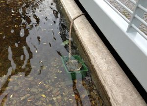 Anschließend wurde unter dem Brückenbereich eine Schicht aus Dernoton, eine abdichtende Tonfertigmischung aus Mineralien, aufgetragen und mit einem Rüttler verdichtet. Anfang Oktober hieß es dann wieder Wasser marsch. Und jetzt das! Zur Zeit wird der Verlust mit einer Pumpe aus dem Hafenbecken ausgeglichen.
