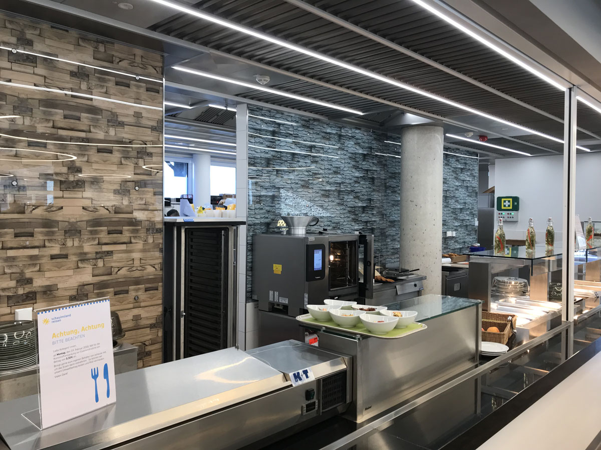 Zu den Highlights des Neubaus zählen das lichtdurchflutete Foyer mit einem acht Meter hohen Atrium, plätscherndem Wasserfall, Pflanzenwand und stylischem Mobiliar. Für das Wohl der Mitarbeiter sorgen diverse Ruhe- und Freizeiträume und das Casino, wo die Mitarbeiter täglich kulinarisch verwöhnt werden. Auf dem Außengelände werden in den kommenden Monaten, neben den notwendigen Stellplätzen, Grün- und Wasserflächen entstehen, die für Pausen und Erholungsphasen genutzten werden können und thematisch passend zum Thema „Sonne, Strand und Urlaub“ gestaltet werden.